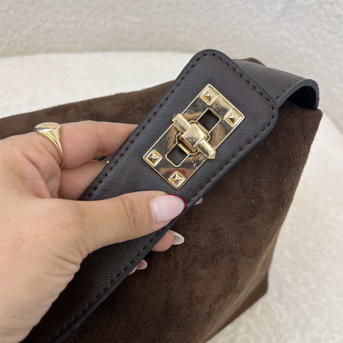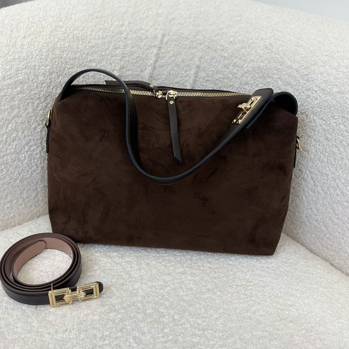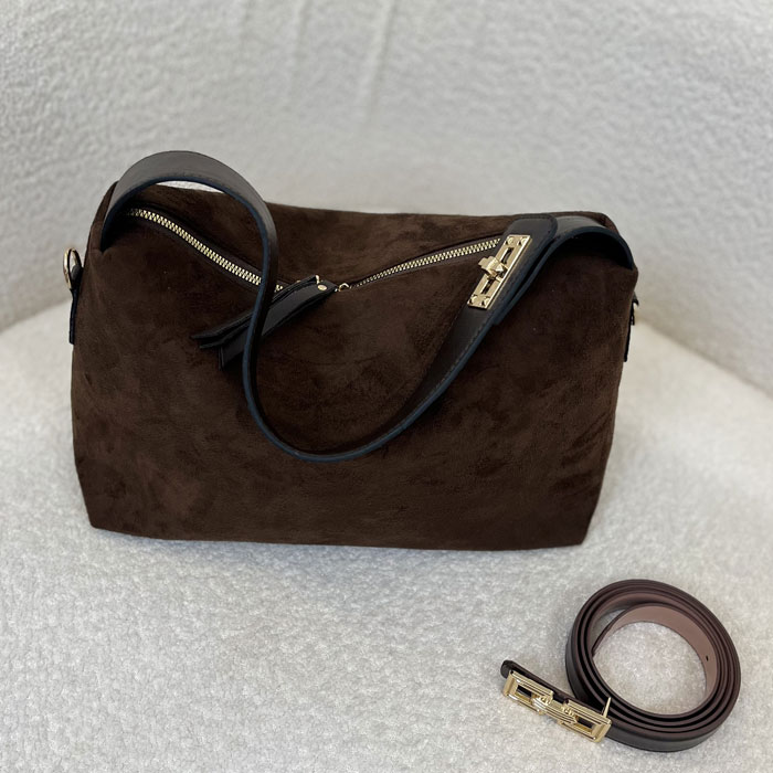 رنگ شکلاتی این کیف، یکی از محبوبترین رنگهای پاییزه است که بهخوبی با پالتوها، بارانیها و جکتهای پاییزی ست میشود. متریال بهکاررفته در تولید این محصول از نوع جیر وارداتی باکیفیت است که علاوهبر ظاهر شیک، ماندگاری بالایی دارد.